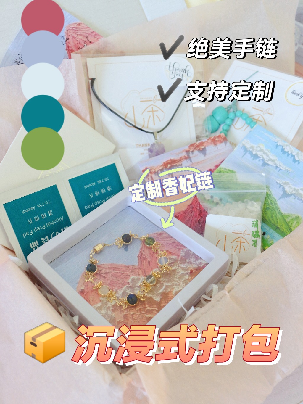 2、維護(hù)小貼士:在佩戴香妃鏈時(shí),要注意避免與硬物接觸;不佩戴時(shí),要妥善收藏,避免纏繞和刮花,長(zhǎng)時(shí)間不佩戴時(shí),可以涂抹一層薄薄的透明指甲油,以保護(hù)鍍層。